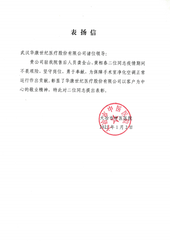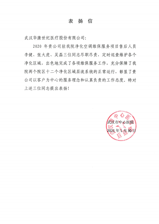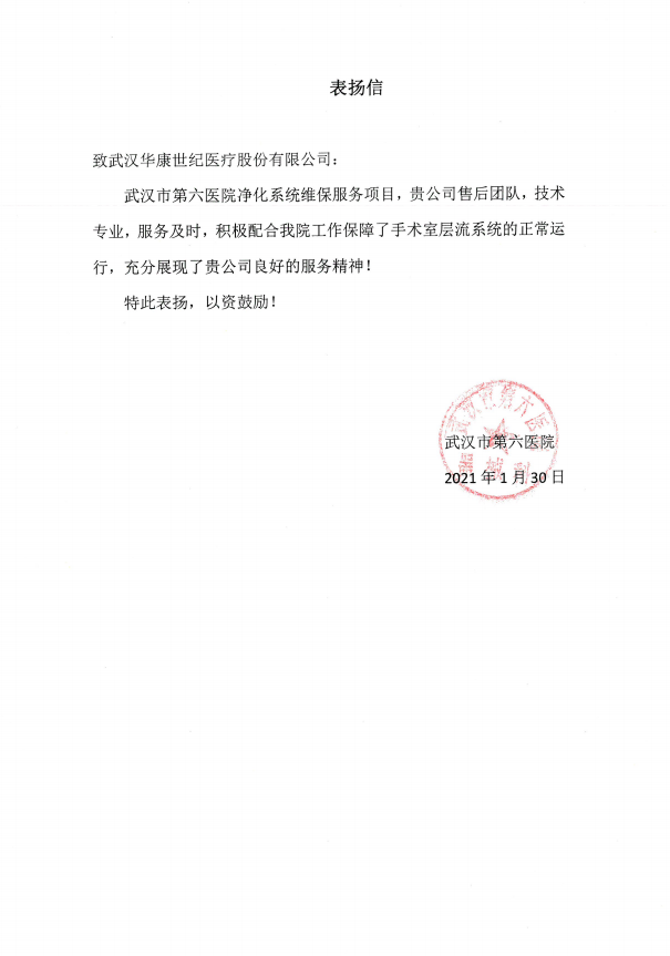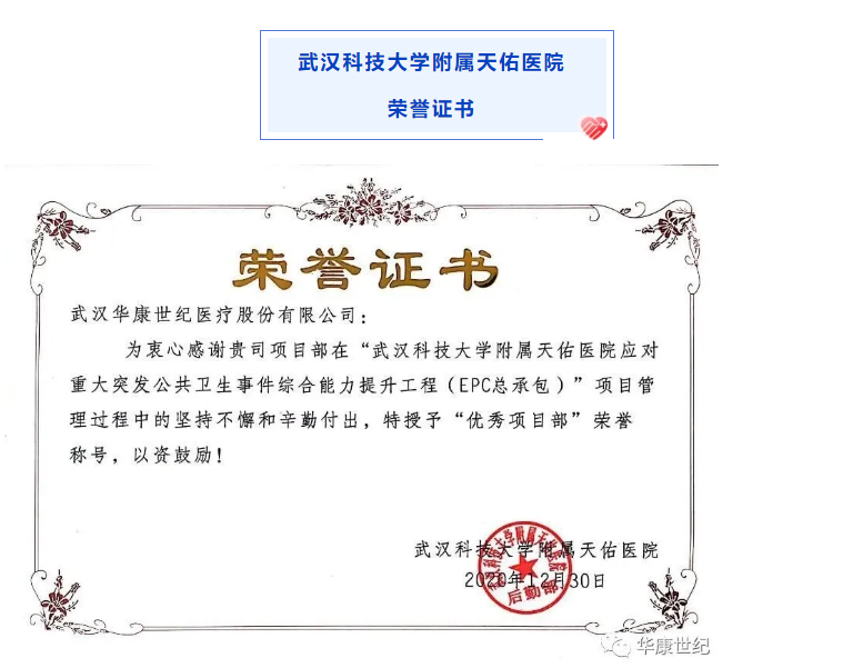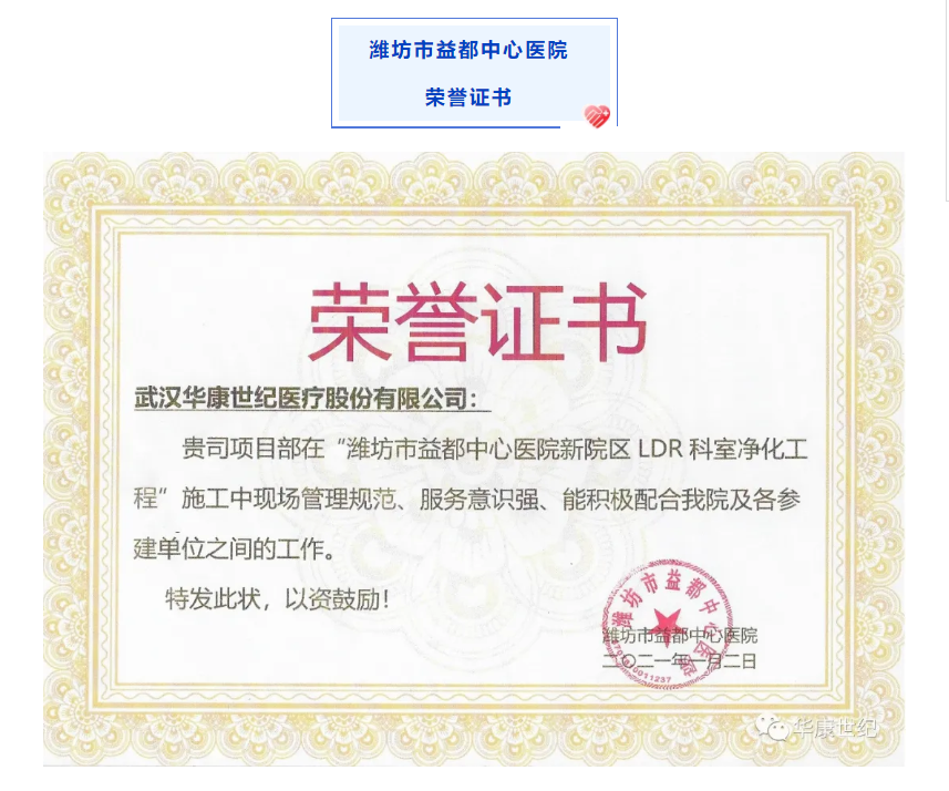 【概要描述】榮譽見證實力,實力承載品質 2020年即將劃上圓滿的句號 回首一年來的點點滴滴 在大家的不懈努力下 華康世紀收獲滿滿 一波又一波的榮譽紛沓而來 讓我們一起來看看吧 2020年,華康世紀項目管理部克服了“時間緊、任務重”的各類困難,保質保量完成了各項目的施工,獲得了一大批客戶的認可,授予了榮譽證書。 ? ? 售后服務部是“幕后英雄”的代表,面對復雜的醫療售后問題——涉及多個專業、多個系統、多種器械的維護,他們提供系統化解決方案,從專業的凈化技術標準出發,使所維護的醫療潔凈環境,發揮系統效能的最大化,達到科室最佳運行效果,賦能一線醫護人員的工作;他們用專業技術確保客戶的“使用安全”,用全年24小時的守護贏得客戶的“安心”,得到了客戶的一致認可。今天,他們用真誠、嚴謹、高效的服務態度贏得了客戶的滿意度,也收獲了來自客戶的榮譽證書、表揚信。 ? ? ? ? 各大醫院表揚信、嘉獎函 榮譽是客戶的認可 更多的是鞭策與責任 2020年,成績斐然,收獲滿滿 2021年,乘勢而上,奮勇超越 全面開啟高質量發展新征程 END