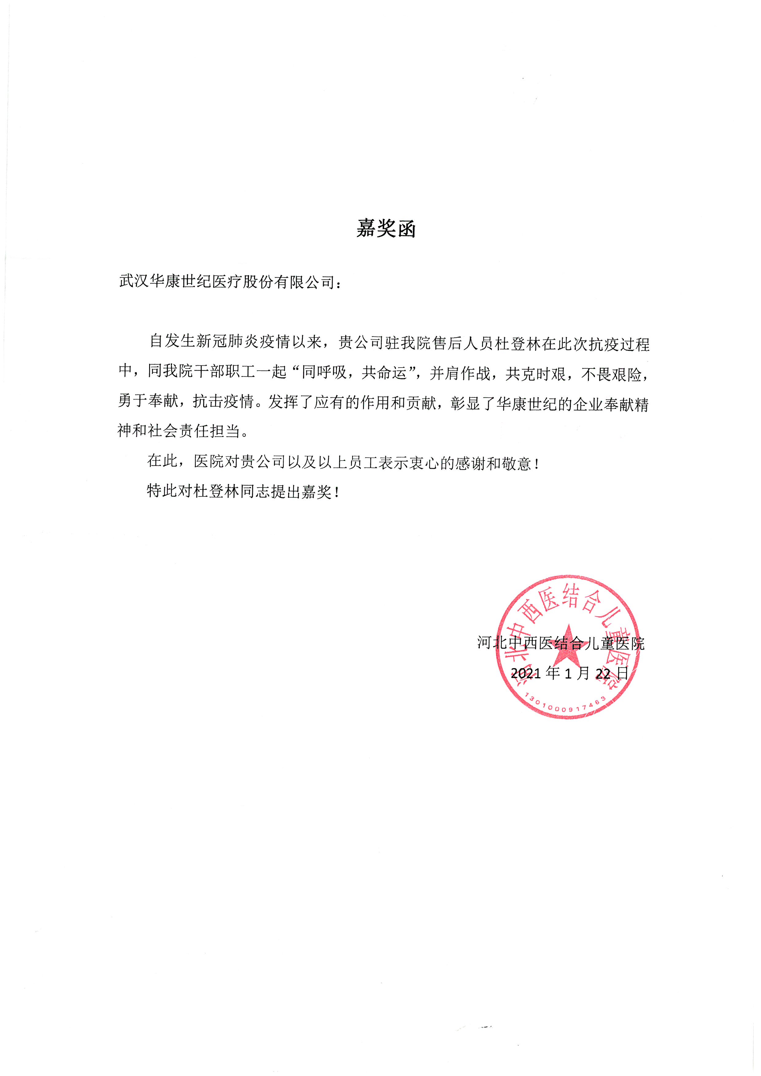 各大醫院表揚信、嘉獎函