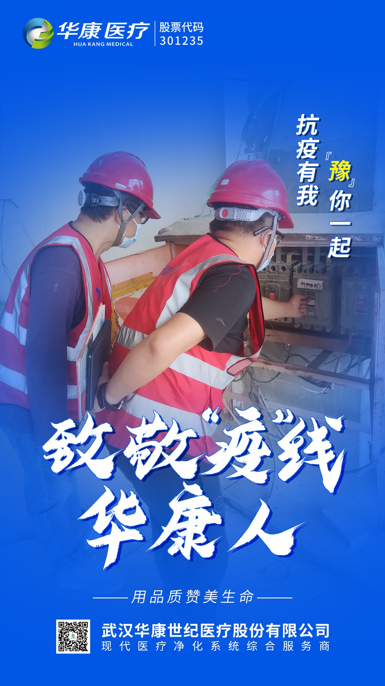哪里有疫情,哪里就有責任,哪里就有華康人。我們堅守在“疫”線的華康人排除萬難,保證項目的進度,為各地防疫工作做出自己的貢獻。他們各司其職,默默付出,用雙手詮釋職責,用肩膀撐起責任,留下了一道道美麗的逆行背影。