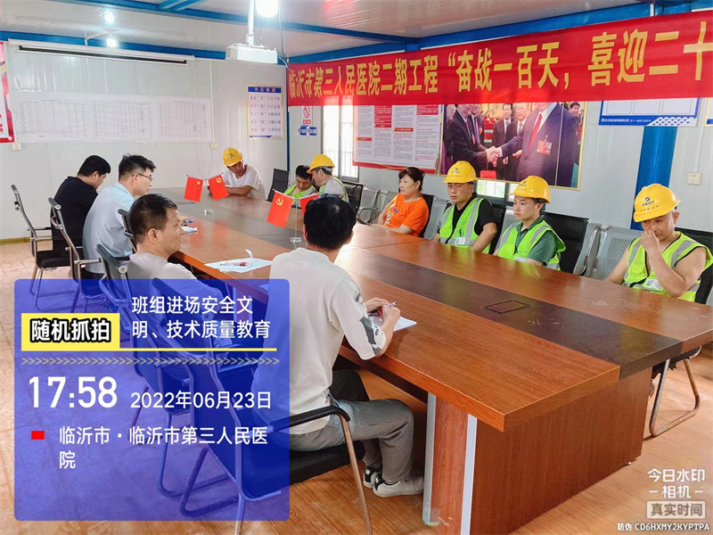 6月23日,臨沂市第三人民醫院項目部組織了安全文明、技術質量教育宣講會,講解了安全生產知識以及相關技術指導,讓全體人員樹立牢固的安全生產意識,以過硬的技術實力來保障項目的順利完成!