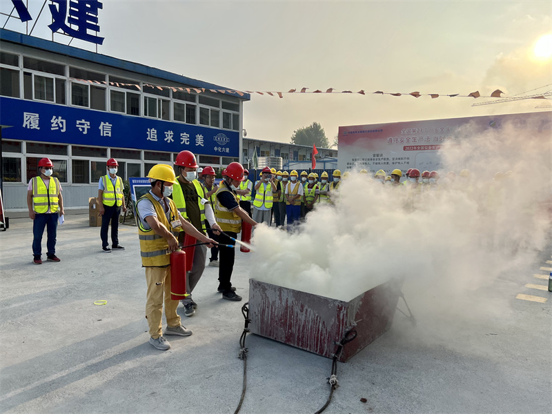 6月22日,項目部組織開展了安全消防實戰演練,通過現場模擬,進行了火災事故、觸電事故與急救技能的應急知識講解和示范,讓一線建造人員在實操過程中加深對安全應急處理技能的掌握,樹立牢固的以人為本、安全生產責任高于一切的思想觀念。