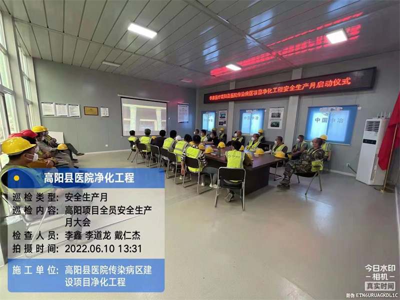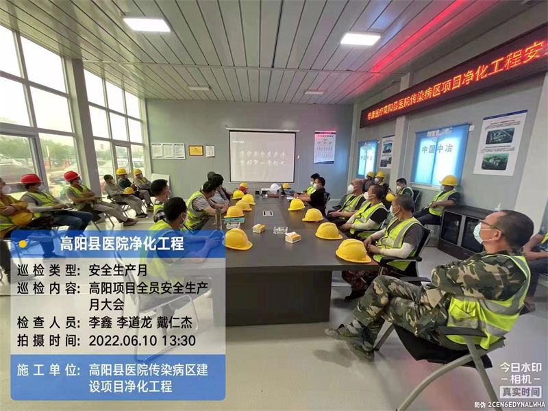 6月10日,高陽縣醫院凈化工程項目組織勞務公司全體施工人員進行六月安全生產月教育培訓,共同觀看了相關教育宣傳片。通過此次觀影,項目人員受益匪淺,不僅收獲了豐富的生產規范、安全急救等方面的知識,更感受到了公司對于嚴抓安全生產的決心。