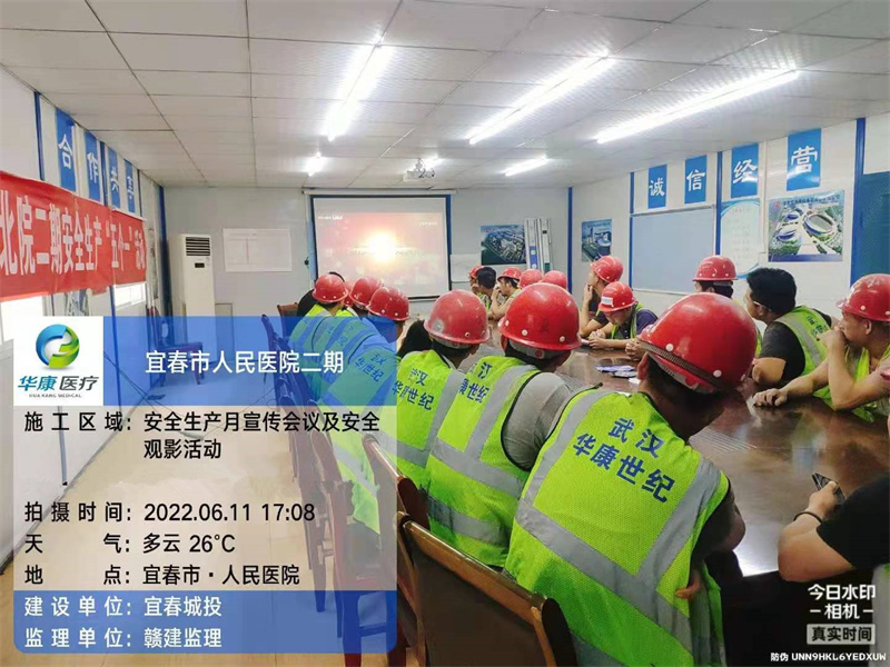 6月11日,宜春市人民醫院二期特殊科室項目部組織勞務公司施工班組開展安全生產月教育培訓觀影宣講活動。活動中項目作業人員集中觀看了生產安全、消防安全等相關知識的講座視頻,有助于強化安全生產意識,掌握更加全面的安全知識。