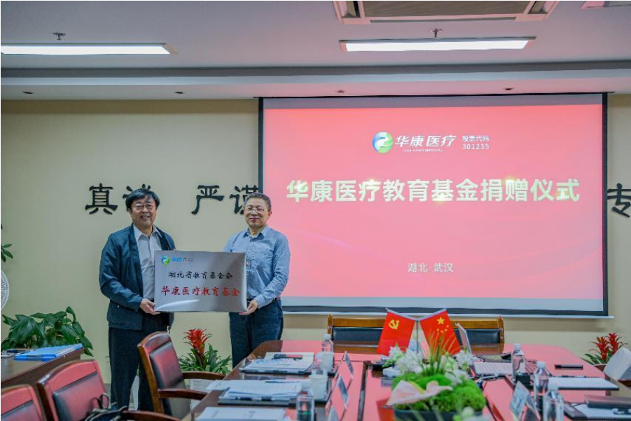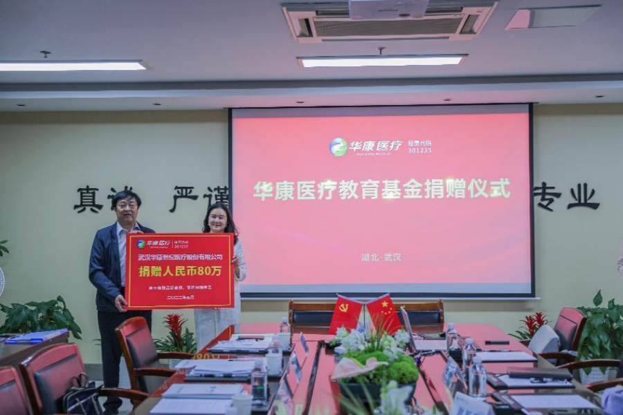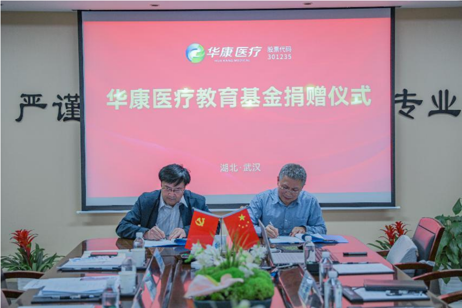 2022年5月20日下午,武漢華康世紀醫療股份有限公司向湖北省教育基金會捐贈80萬元,簽約儀式在華康醫療總部舉行。