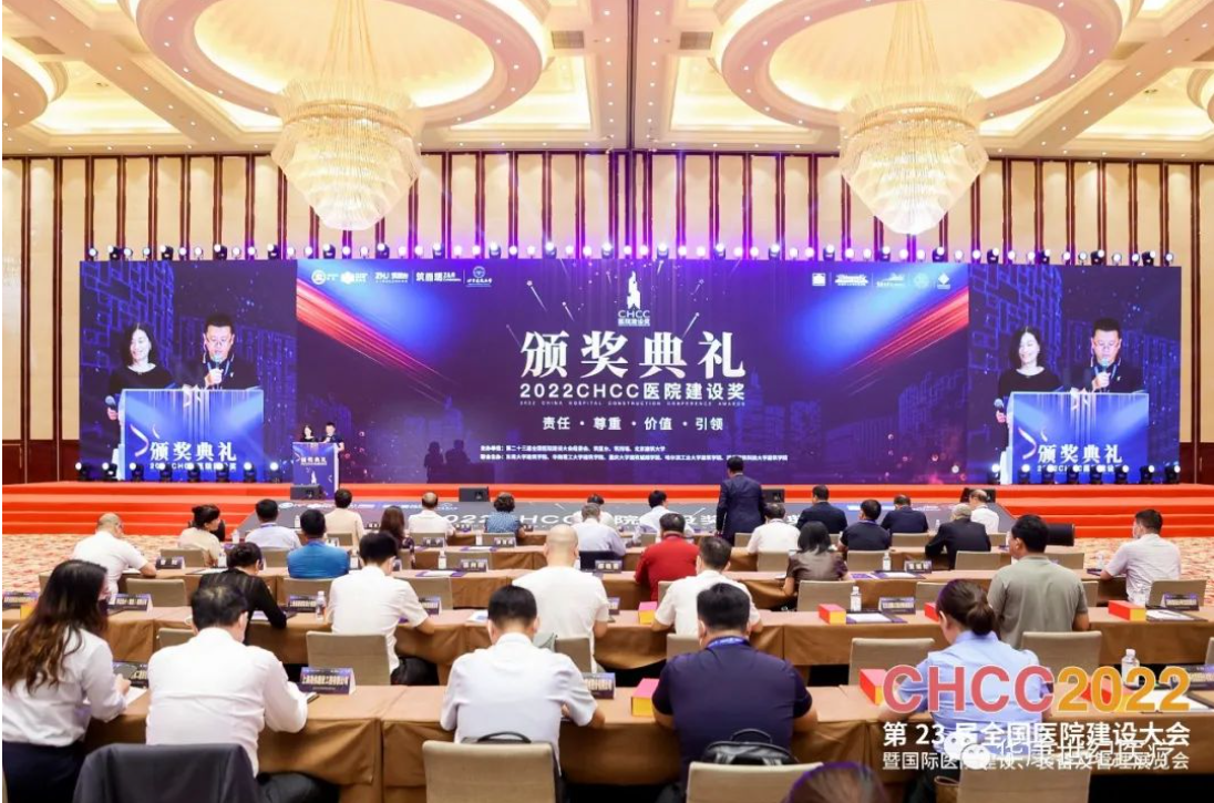 2022年7月22日,由第23屆全國醫院建設大會組委會主辦的2022CHCC醫院建設頒獎典禮在武漢國際博覽中心會議中心五樓隆重舉行,大會共頒發中國十佳醫院建筑設計方案、中國最美醫院、中國十佳醫院建筑設計師、中國醫院建設十佳供應商、中國醫院建設杰出企業領袖、國際醫療建筑卓越設計獎、2022CHCC醫院建設獎“終身成就獎”等13個專業獎項。