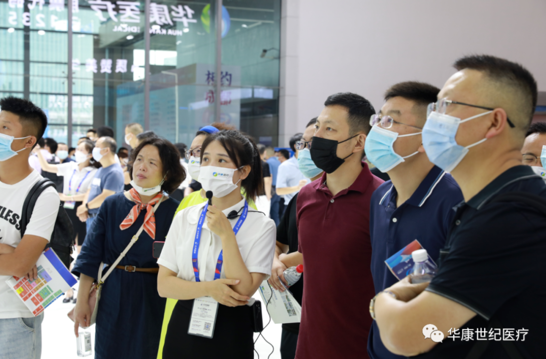 華康醫療展臺不斷涌入觀展者,認真傾聽現場講解員的詳細講解。