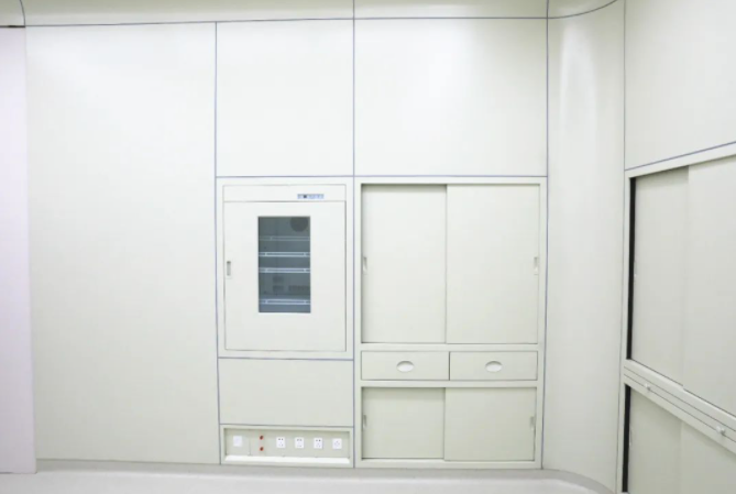 改進科室設備安裝:為彌補以往設備安裝的缺陷,項目專班創新性地使用裝配式保溫柜安裝方式以及定制化消火栓、管道井暗門,不僅保證了設備功能使用不受影響,還極大提升了手術部整體美觀度。