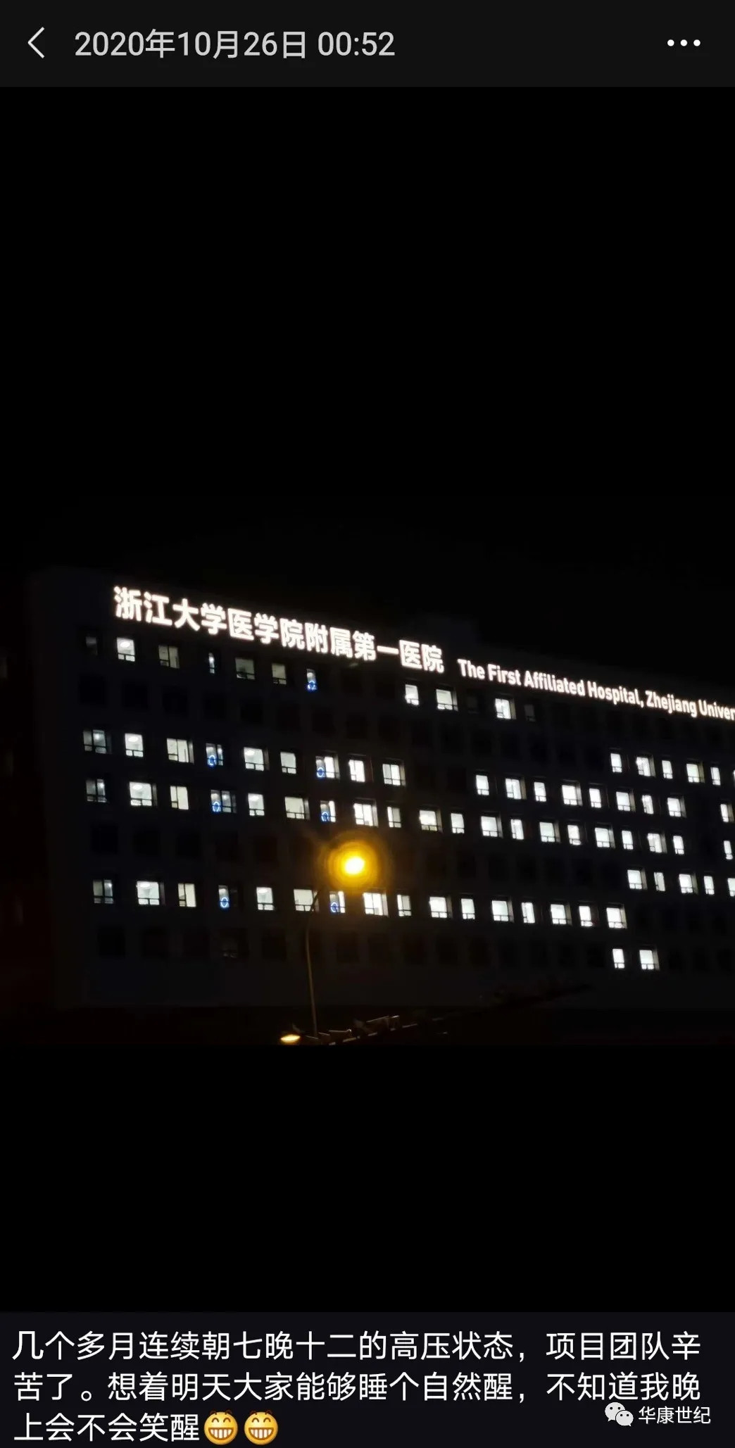 ? ? ? 10月26日的凌晨52分,陳志發了一條朋友圈“幾個多月連續朝七晚十二的高壓狀態,項目團隊辛苦了。想著明天大家可以睡個自然醒,不知道我晚上會不會笑醒。”附上黑夜里的浙大一院總部項目圖片,詼諧中又是滿滿的疲憊。這是項目施工以來普通的一晚,同樣也是即將迎來浙大一院總部項目開業的前夕不一般的一天。