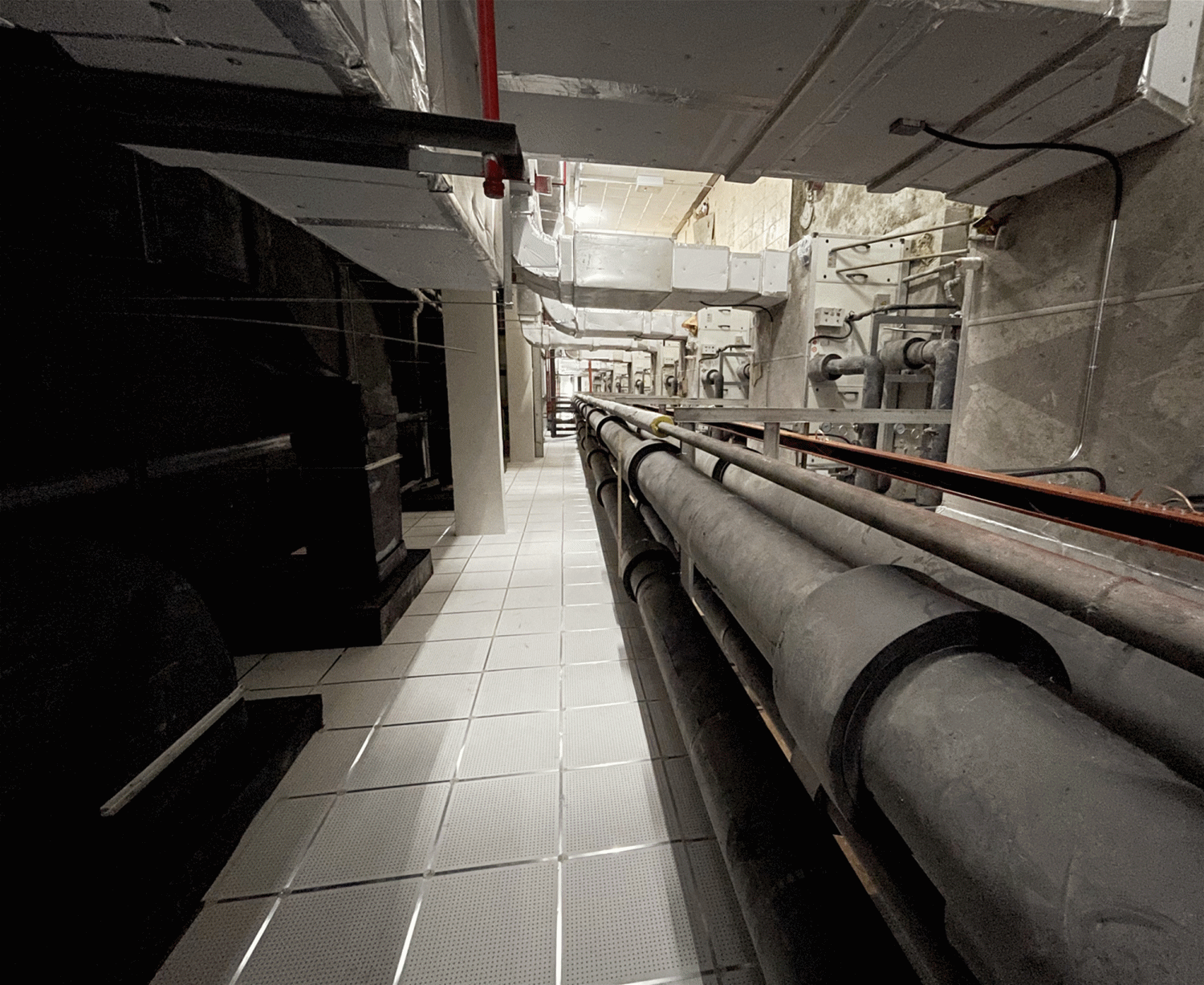 最高峰,杭州未來城凌晨3點最黑的夜晚,浙大一院總部項目的連廊還燈火通明,只看到10米連廊兩邊被機組及管道放的滿滿當當,但是在第二天早上,卻又清理的干干凈凈。就是在施工條件如此困難的情況下,通過最原始也最吃力的人工搬運方式進行運輸,如此往復,實現了所有機組的運輸。